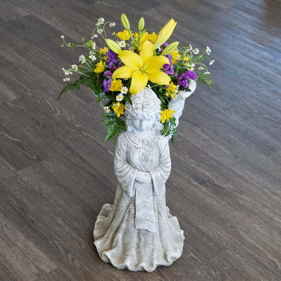 A perfect addition to your porch or patio, our concrete angel planter statues are great for fresh cut flowers or blooming plants. A perfect gift for the angel lover in your life.