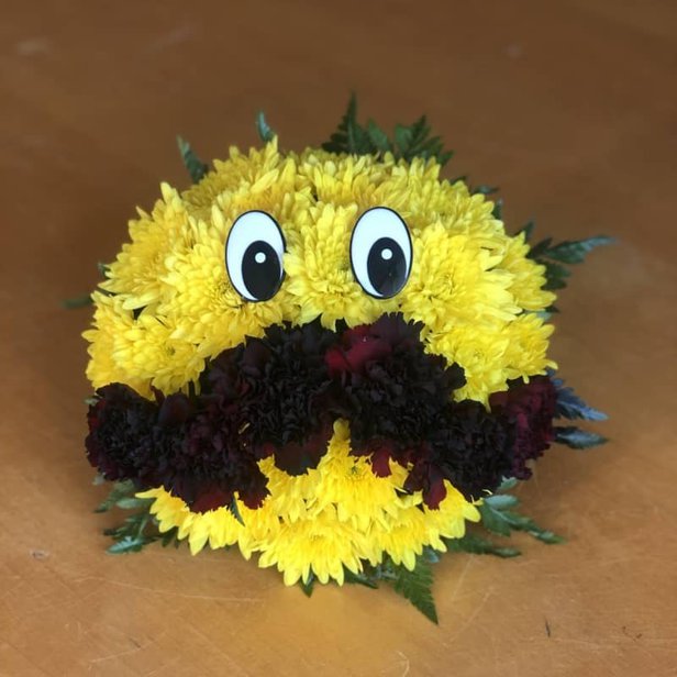 We mustache you a question… do you love emojis? This bright and funny flower arrangement is sure to make you LOL. Perfect for any occasion, this hand created piece is in a low profile container that is easy to ship and travel with. Send it to your favorite, full of facial hair friend or father!