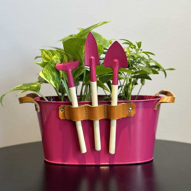 The perfect gift for your favorite Plant Mom! This darling set comes with a trio of small gardening tools and two plants. Plants and container color may vary based on availability.