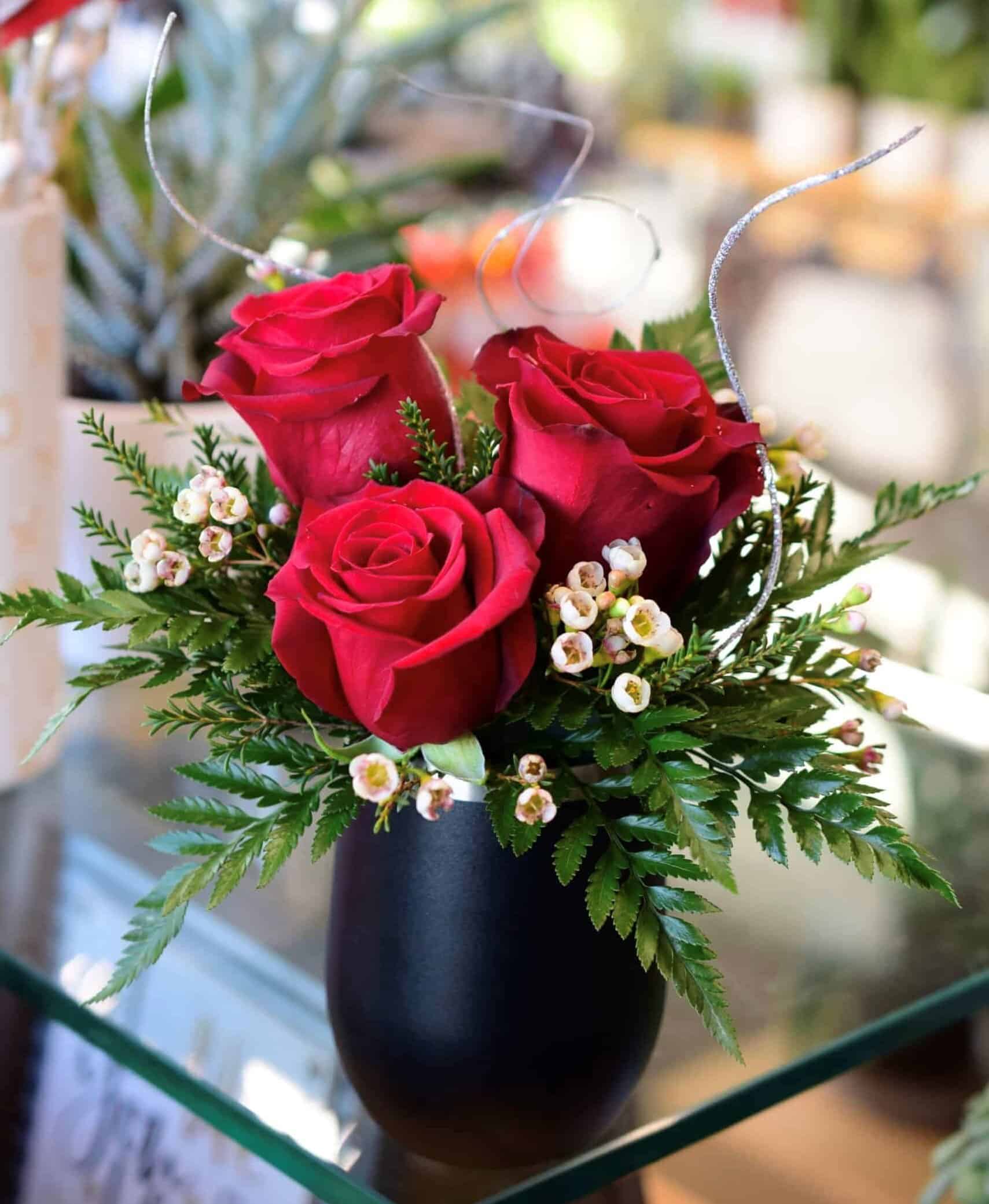 Roses are red and so is wine! Enjoy these beautiful flowers delightfully arranged in a keepsake wine tumbler. Red roses, red or white wine of your choice, with greens and red accents. Flowers varieties and container style may vary based on availability.