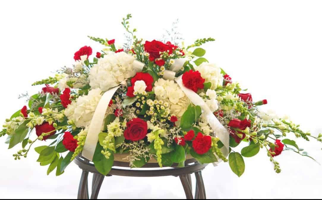Full casket sprays are used for closed casket services and half casket sprays are used for open casket services.