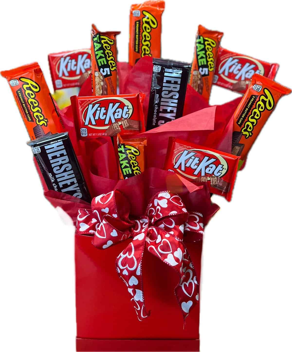Something Sweet! Enjoy this delicious bouquet of all your favorite candy bars. Twizzlers, Snickers, Hershey, Reese’s, MilkyWay and more… these assorted candy bouquets are sure to brighten everyone’s day! Great for all occasions, especially to satisfy the sweet tooth in your life.