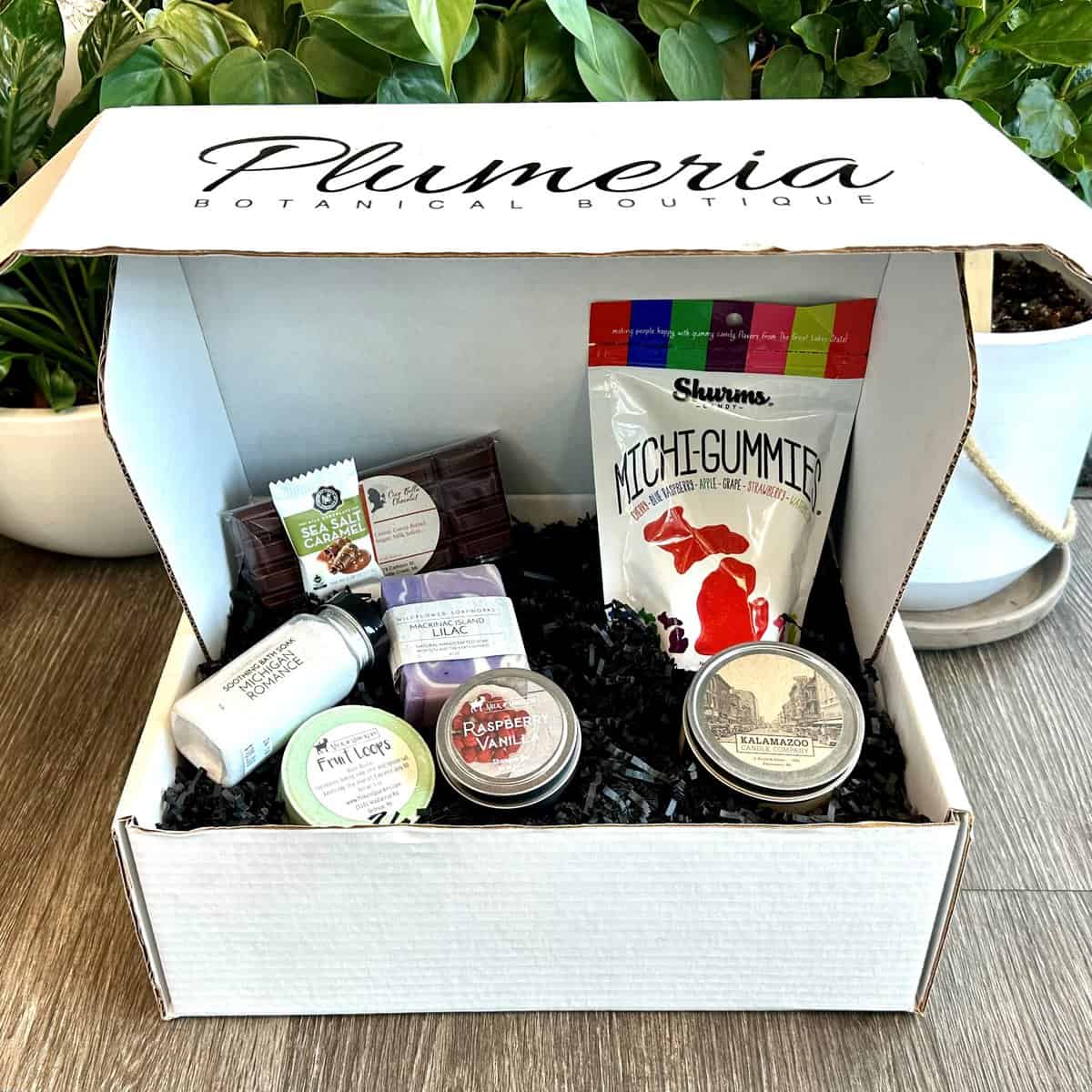 We love the great State of Michigan! When you open this box you’ll find our favorite locally-sourced and Michigan made products: a bath bomb, candle, bath soak, chocolate, hand crafted bar of soap, Michigan shaped gummies, and a shampoo bar! This box is the perfect self-care present to yourself or a loved one.
