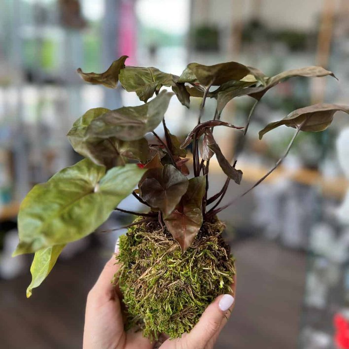 Syngonium Podophyllum is known as an Arrowhead Plant. This easy to care for plant is wrapped in moss using the Kokedama method, making it easy to water and hang. The Arrowhead plant is fast growing and a perfect gift for anyone looking for a beautiful, easy to care for indoor plant.