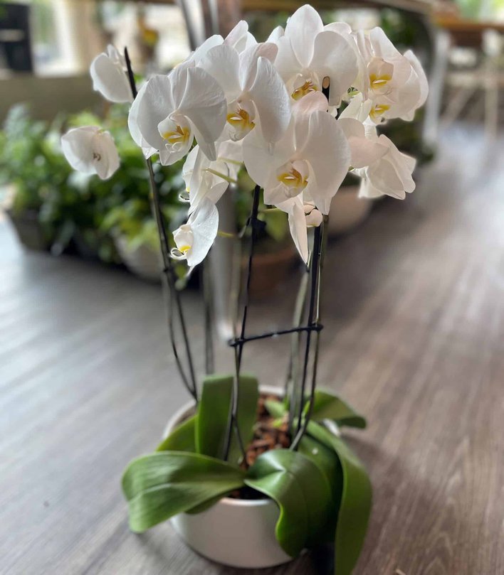 Knowing the meaning and symbolism of an orchid will help to send the message you’d like to a friend, family or loved one. The orchid has long been seen to possess grace and elegance. Given for good fortune and good luck, the orchid is also gifted as a sympathy piece to honor everlasting love. This decorative dish garden is filled with long stemmed orchids in different shades. Perfect for many occasions. Color of Orchids will vary based on availability.